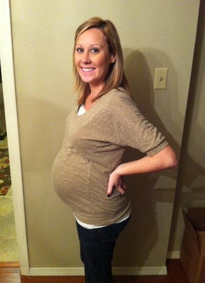 32 weeks..I can't believe how BIG my belly is getting! Still feeling good and sleeping well. It is amazing to think that there is a little baby in there! I have to say, I am shocked looking at this picture that I have not experienced back pain yet. It mostly hurts in the lower part of my belly, but from talking to other people that is normal. He has been very quiet during the day and VERY active at night. As soon as I lay down he is ready to rock and roll. Hopefully, this isn't a regular thing! ;)